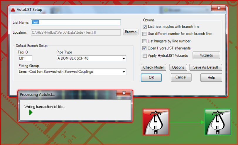 HydraCALC-Sizer is also for those designers that may be calculating a job outside of HydraCAD. The Sizer will set up an entire hydraulic calculation job quickly and easily.
