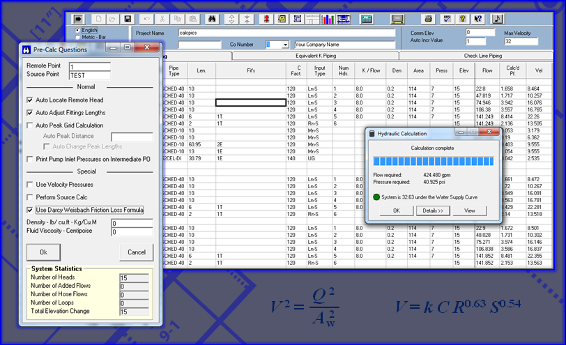 Software handling the fundamental principles of pressure loss calculations and the discard of water through a sprinkler head and other types of nozzles.